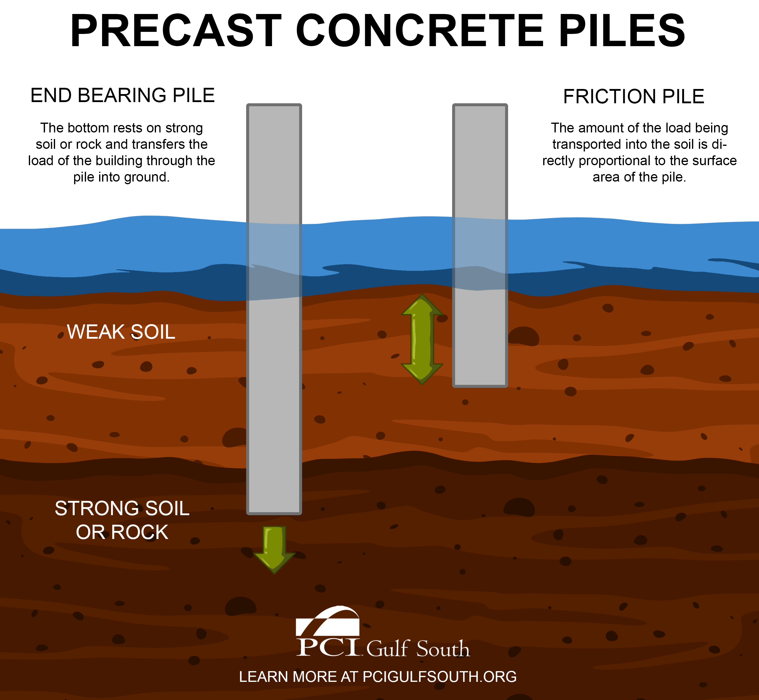 In marine and coastal environments, concrete piles are a true workhorse and have a greater longevity than wood or steel piles.